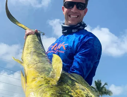 Mahi mahi are less concentrated than during summer months but still show up around floating debris, weed lines, and current breaks pushed in by winter weather. These fish often hold slightly deeper in December, making jigs and subsurface baits effective.