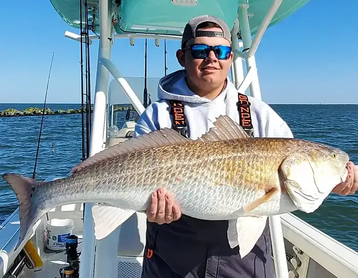 Fall is known for its schooling behavior. Hundreds of reds can pack into tight groups on hard bottom and shallow flats. In clear water, these fish are visible from a distance, giving anglers long sight-fishing shots. Reds feed with more confidence this time of year because shrimp, mullet, and small crabs are constantly moving, and that steady food supply makes them aggressive. Slot-size reds work shell points and marsh bends, while larger overslot fish hold deeper in bends and channels. Calm mornings sometimes bring surprise topwater action as reds push bait against the banks.